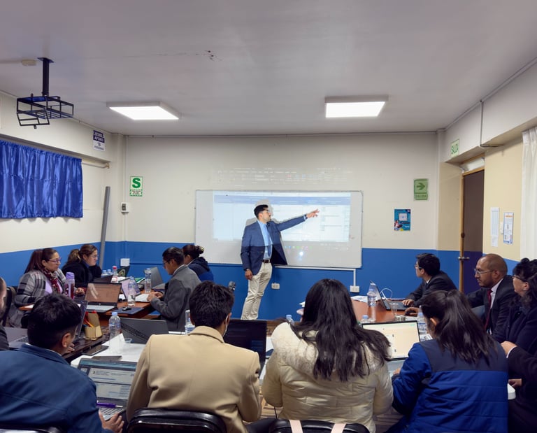 Fortalecemos la educación superior mediante gestión de calidad, optimización de procesos, gestión curricular y desarrollo académico, acompañando a universidades, institutos técnico - productivos y programas de estudio en su mejora continua.